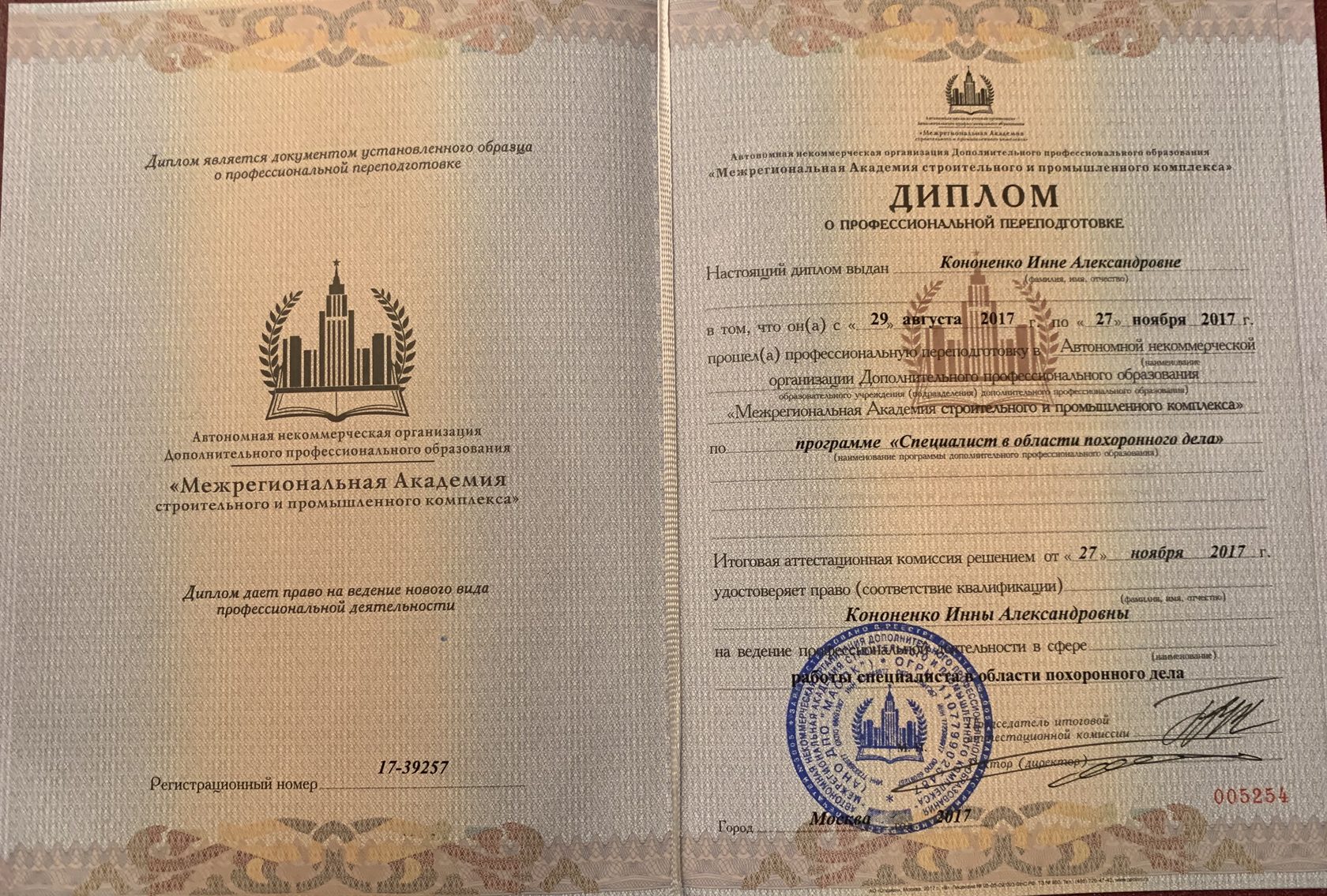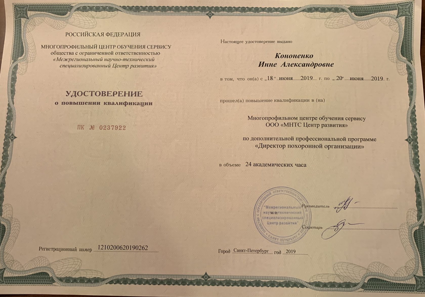 Наш персонал имеет документы, подтверждающие право заниматься оказанием ритуальных услуг.
